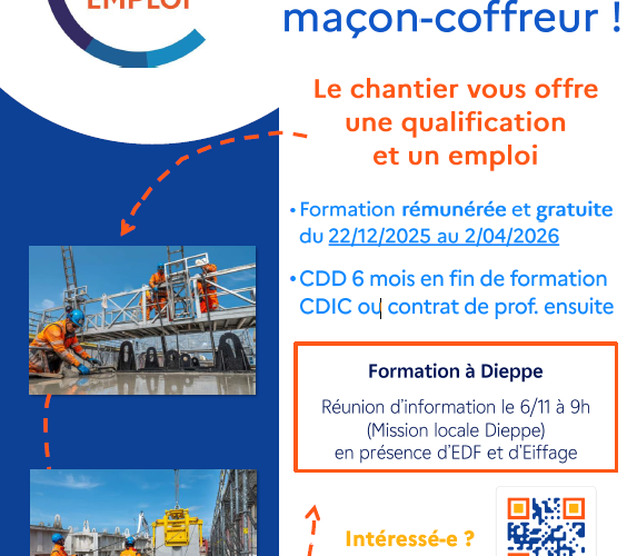 La réunion d’information et de recrutement pour cette formation aura lieu le 6 novembre à 9h dans les locaux de la Mission Locale à Dieppe – 8 avenue Normandie Sussex.